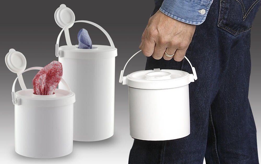 TAPERED WIPE TOWEL CANNISTER (with molded in ring bail)